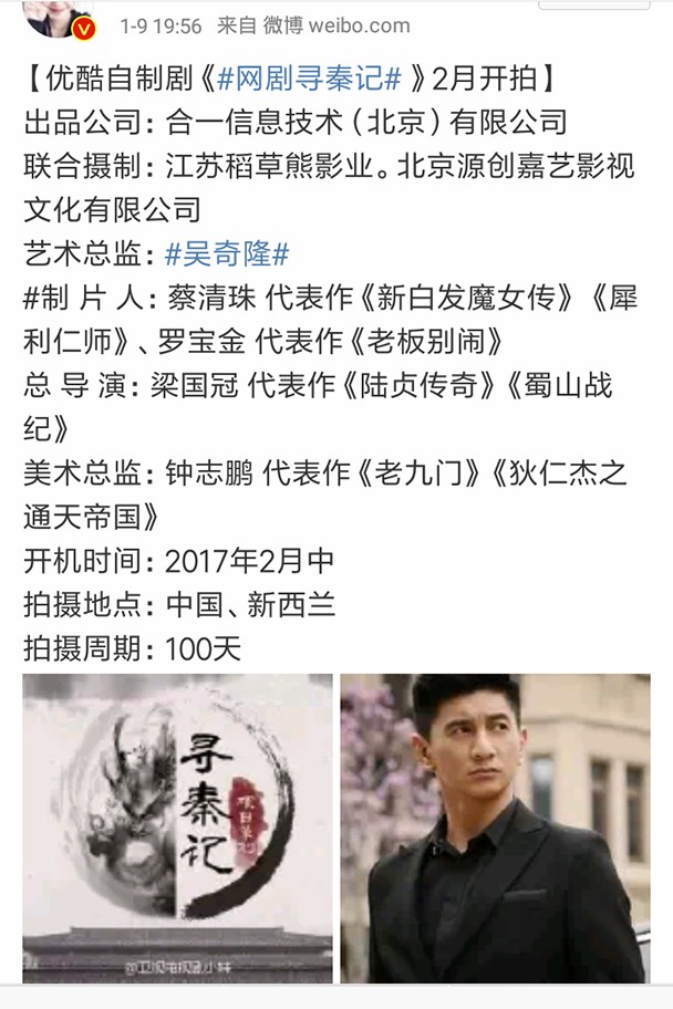 新版《寻秦记》2月18日开机,吴奇隆担任艺术总监挑战经典