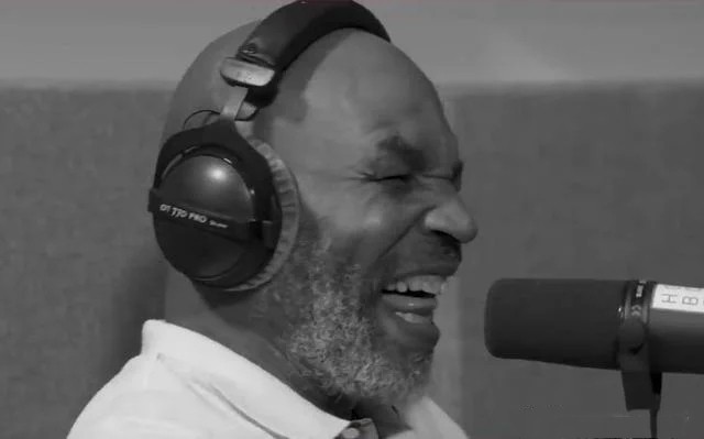 一位主持人,两位重量级人物,一台摄像机,节目甚至开始录制。他一上来,主持人就直截了当地谈到了23年前拳击手泰森咬耳朵的事情。霍利菲尔德的话让54岁的泰森笑得像个孩子。