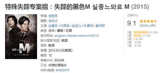 尤其值得一提的是,这部《特殊失踪专案组M》的豆瓣评分高达9.1分,由此可见OCN出品质量之高。