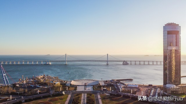 站在观景台山,星海湾的美好景色尽收眼底,这样的名字就透着星辰大海般的浪漫温柔,而碧蓝的海水上,跨海大桥如飞龙游走,气势磅礴,蜿蜒至视野之外,仿佛没有尽头。