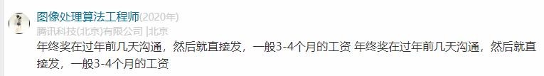 一位图像处理算法工程师:年终奖在过年前几天沟通,然后就直接发,一般3-4个月的工资 年终奖在过年前几天沟通,然后就直接发,一般3-4个月的工资