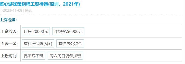 一位核心游戏策划师:工资收入,月薪:20000元 年终奖:50000元