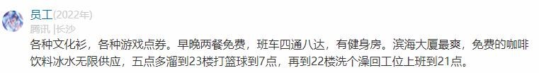 一腾讯员工:各种文化衫,各种游戏点券。早晚两餐免费,班车四通八达,有健身房。滨海大厦最爽,免费的咖啡饮料冰水无限供应,五点多溜到23楼打篮球到7点,再到22楼洗个澡回工位上班到21点。
