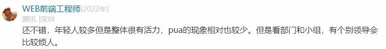 一位WEB前端工程师:还不错,年轻人较多但是整体很有活力,pua的现象相对也较少。但是看部门和小组,有个别领导会比较烦人。