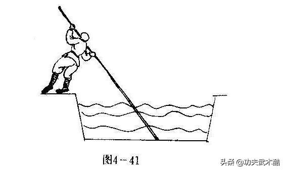 当前行道路上出现较宽,不太深的水沟时,可借用长杆,撑杆飞跃而过,现将其法介绍如下: