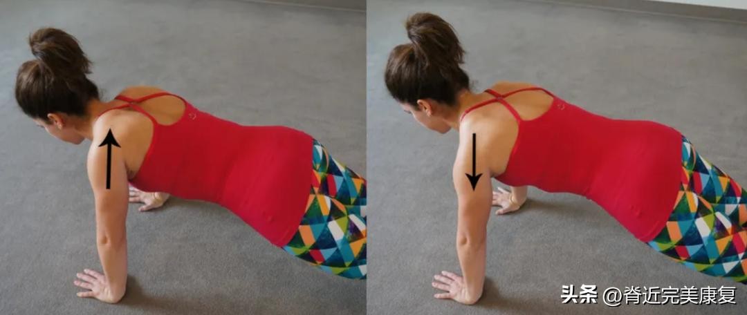 双手掌感觉推向地板发力,让肩胛骨前伸(让肩胛骨原远离脊柱)。