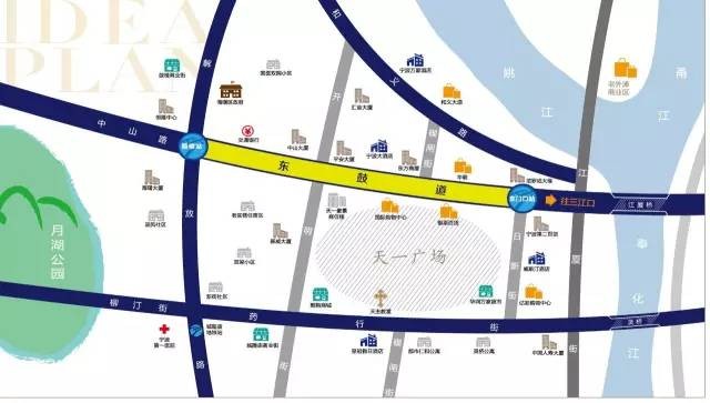据介绍,东鼓道地面两侧拥有10个以上大型商圈、写字楼或住宅区,其中从东到西,南侧有:二百、天一广场及天一银泰百货、天一国购、天一豪景、开明街、老实巷住宅区,北侧有:培罗成大厦、新华联、和义大道、宁波大酒店、平安大厦、中山大厦交通银行、海曙区政府以及恒隆中心,鼓楼商业街。从1号线东门口站到鼓楼站——短短800米的中山东路沿线,可以说是宁波最繁华的商业地段。