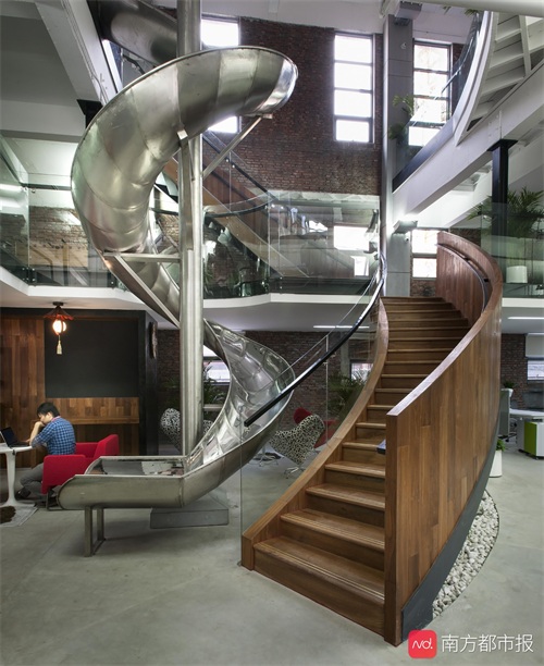 微信总部最具特色的装置大滑梯,后来被很多公司效仿。
