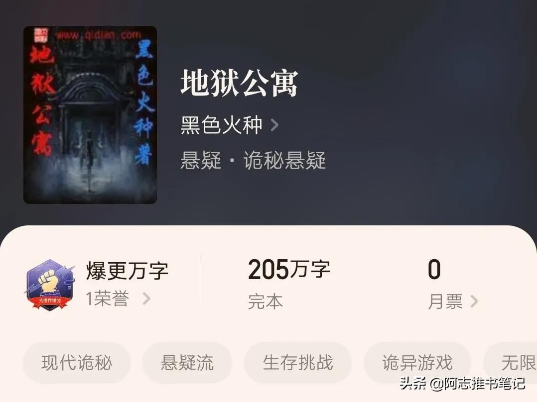 黑色火种写无解类恐怖无限流小说是真的有一手。《地狱公寓》算是最出圈的一本,悬疑诡秘,氛围感十足,写得很好。