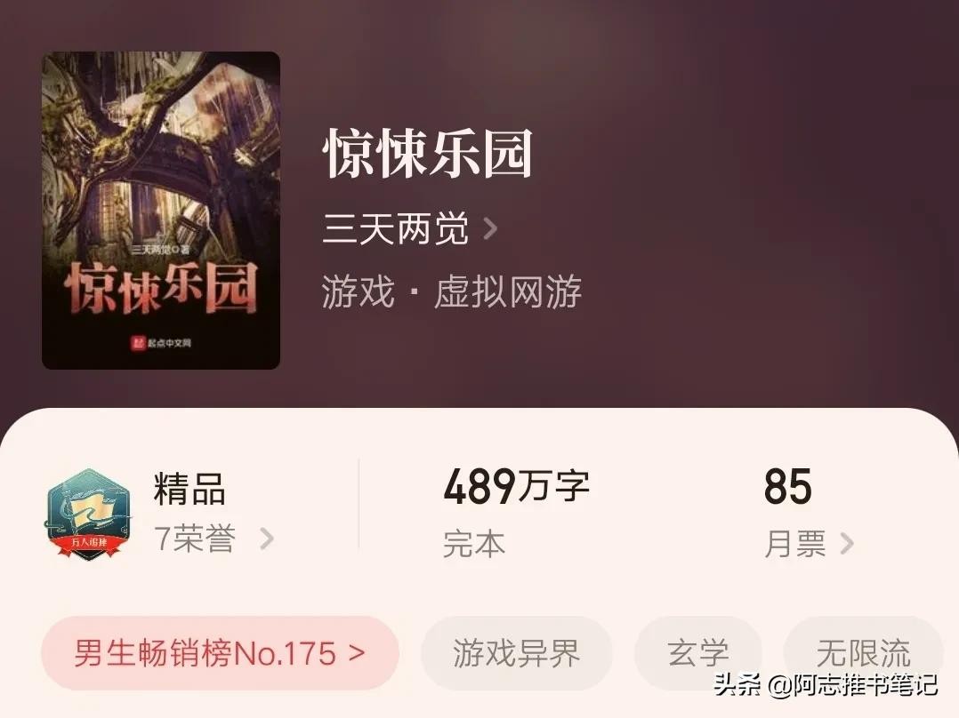 这本小说以惊悚型无限流为主,脑洞惊艳,主角觉哥有失恐症,无法感觉到害怕恐惧,想在《惊悚乐园》这游戏里治病,然后就出名了。主角的高智商、神经质,阅读癖和推理癖是其精彩看点,剧情也是出了名的烧脑,特别惊险刺激,已经完本,可以多刷。