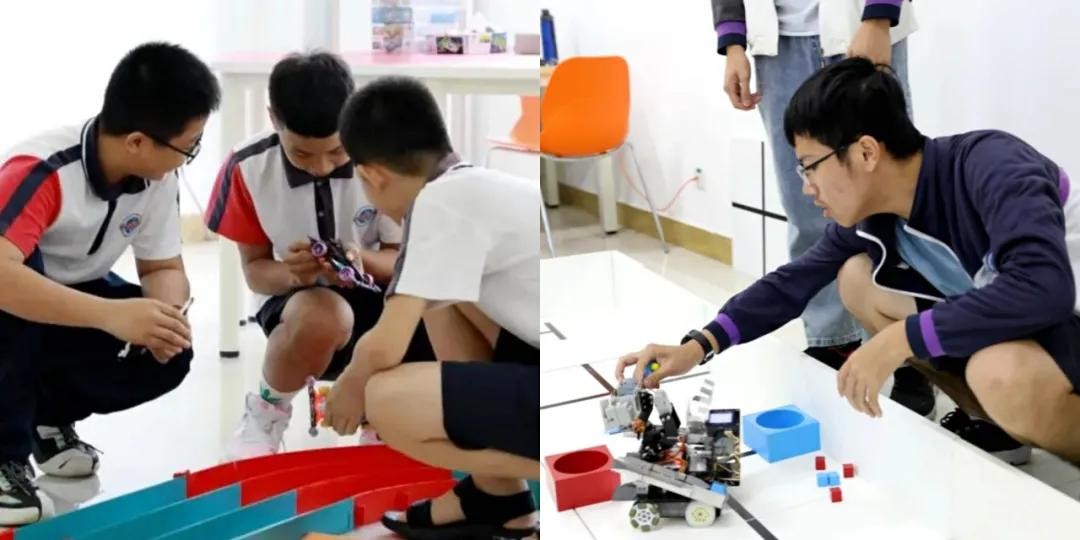 在参观科创中心时,我校学生演示的垃圾分类机器人、迷你四驱车和3D打印技术的操作,吸引了考察团领导的驻足,他们被学生们在演示过程中的那种自信、热爱所打动,对孩子们精彩的展演,专业的素质较为赞赏。