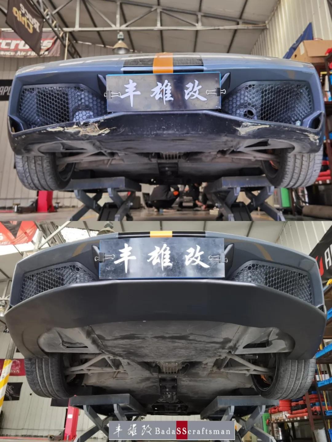 前后杠的材质又是玻璃钢的,修复难度相当大!