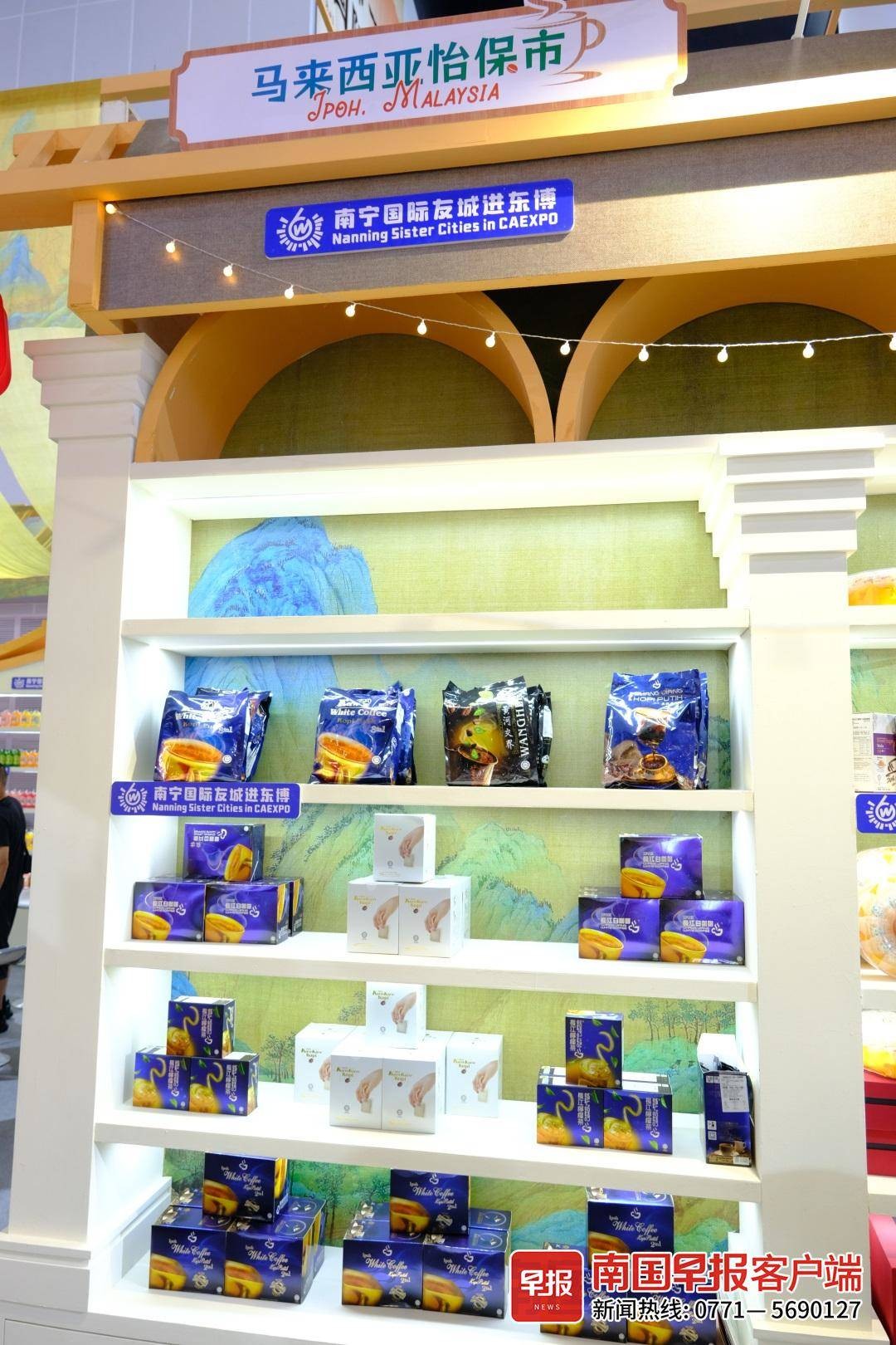 在“2023南宁国际友城进东博”展区,怡保市展位上也有不少白咖啡展出。滕叶子介绍:“怡保白咖啡已经参加过3次‘南宁国际友城进东博’活动,每次展位前都很热闹,很多消费者慕名而来。”