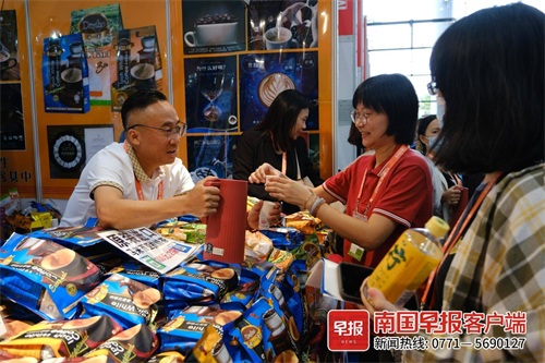 9月16日,第20届中国—东盟博览会开幕,在马来西亚国家商品馆内,怡保白咖啡参展商王先生的展位前人头攒动。据王先生介绍,他今年是第8次参加东博会,每次来,他的白咖啡都能销售一空,这让他感到非常开心。“南宁本地有很多老客户都喜欢我的咖啡,买过一次后每年都会来买。还有参会的一些嘉宾也是每年都会来展馆找我买咖啡。我们开了十几年的网店了,线上销售情况也很不错。”