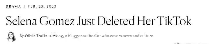 随后,网友们就发现赛琳娜把自己的TikTok(国外的抖音)账户删除又恢复,估计短时间内不会更新日常的作品了。