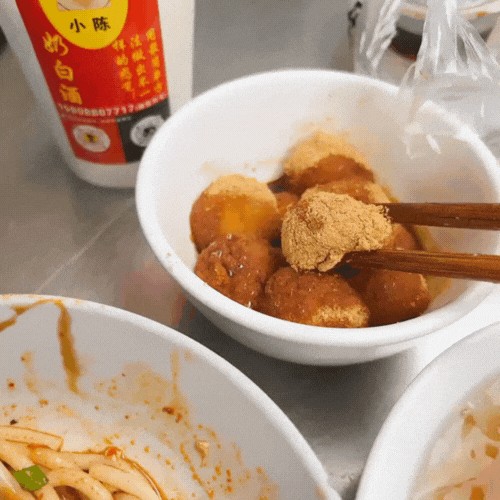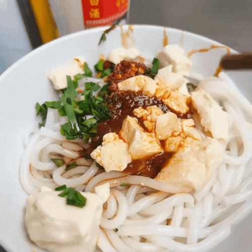 是我挚爱的【碳水+碳水组合】,信手挑来,将米线的爽滑与豆花的软嫩搅合在一只白碗内。白碗是世上最美的食器。