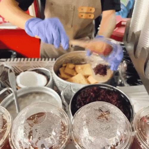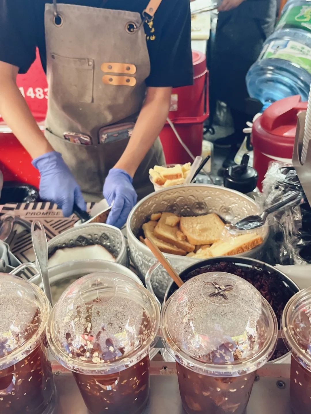据说泡鲁达从缅甸传入,用西米、大西米、紫米、木瓜冻、炼乳、奶油面包干、新鲜椰丝加上碎冰块做成,简直就是甜品届的十全大补汤,胃口小的女生估计喝一杯都不用吃饭了。