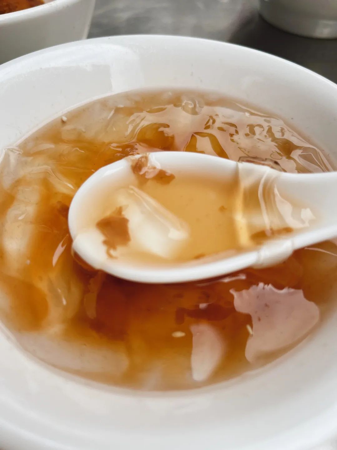 如果觉得辣,3块钱一碗的木瓜水你值得拥有。玫瑰酱糖水衬着木瓜籽搓揉出的凉粉,甜与凉的程度都刚刚好。凉粉晶莹软滑,玫瑰酱略带发酵后的酒意,几粒白芝麻勾勒出若有似无的香醇,一碗下去,清凉滋润到心。