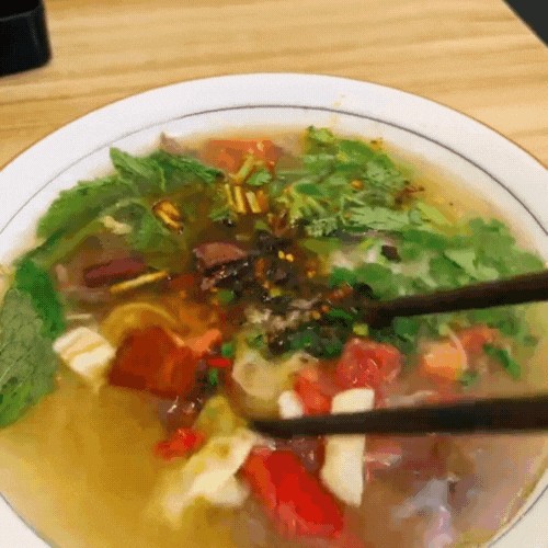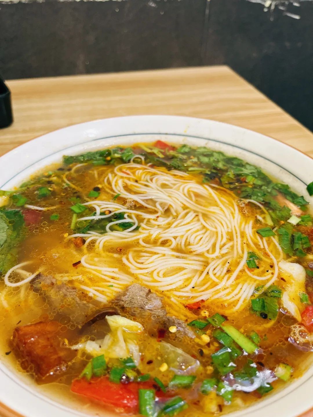 这种细细的米线我是很喜欢的,绵软滑溜,很吸收底汤的味道。然后这个底汤也很鲜。假如少放点辣椒,会更美味。