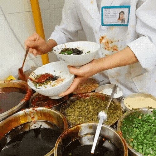 点了一碗牛肉细米线,然后跟在一位大哥的后面,他放什么我放什么,事实证明,辣椒跟着放多了。一口下去还有点呛。
