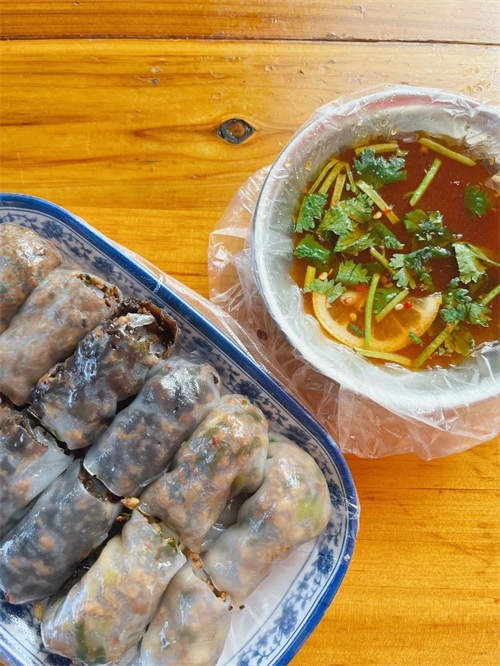 小卷粉内并未加入太多复杂的调料,能吃出纯粹的香菇、木耳、小葱等食材的原味,单就这样空口吃未免普通,一碟地道东南亚风味的酸辣蘸水将美味提升到令人欣喜的程度。