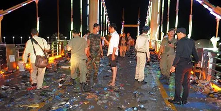 2010年11月22日是柬埔寨为期三天传统送水节的最后一天,约有300万人涌向金边观看相关庆祝活动,一座桥发生晃动,引起人们恐慌,导致事故发生