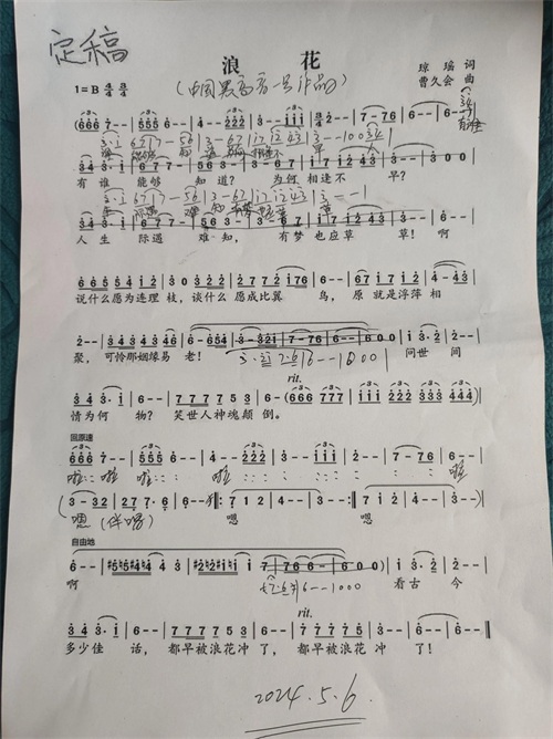 艺术歌曲《浪花》曲谱2024定稿