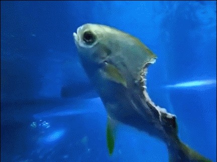 16.最坚强的鱼,身体被咬掉了三分之一,却仍然活着。