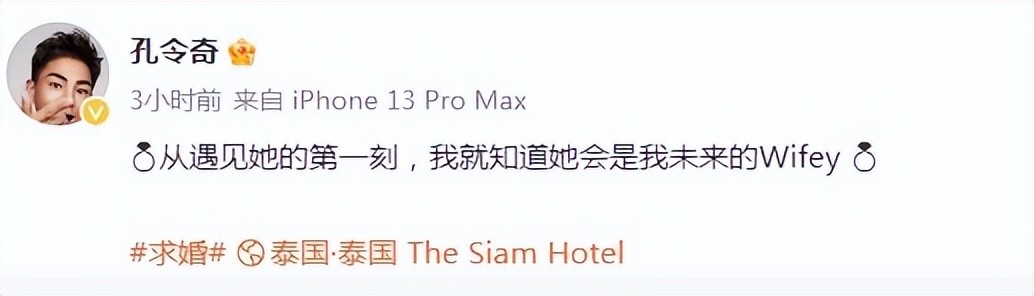 【2】《孔令奇于2月8日在曼谷向女友求婚,「她说YES,让我感到无上的荣幸。」 》