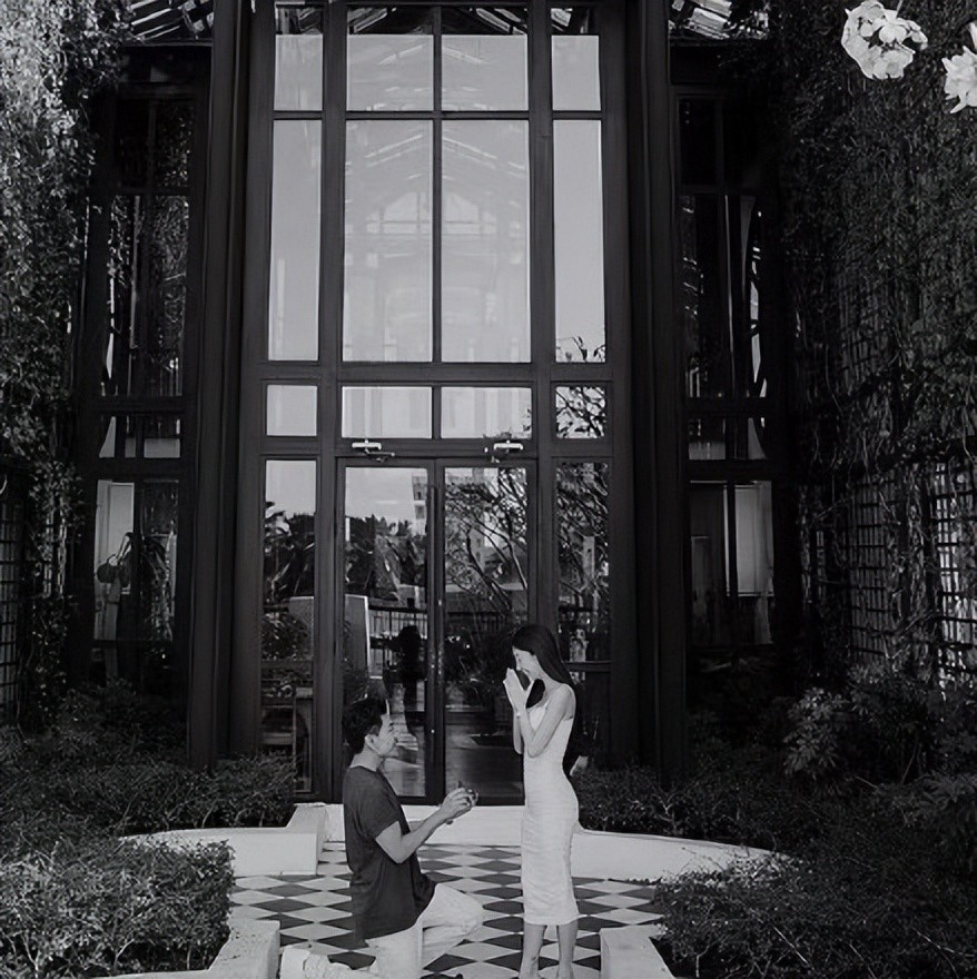 这种穿衣打扮一般出现在泰国电视剧中,事实上,这个姑娘是一个马来西亚人。第一张照片,孔令奇单膝跪地,把戒指戴到了未婚妻的无名指上。