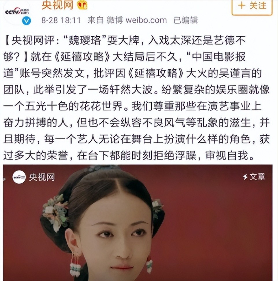 2018年,《延禧攻略》爆火后,央视电影频道向吴谨言抛出了专访。