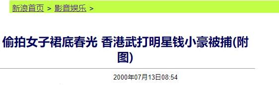 2000年7月11日武打巨星钱小豪在香港某大型超市用手提袋涉嫌偷拍女子裙底,被保安识破,众人报警将钱小豪送往警察局调查。