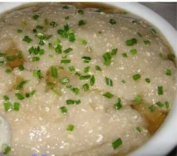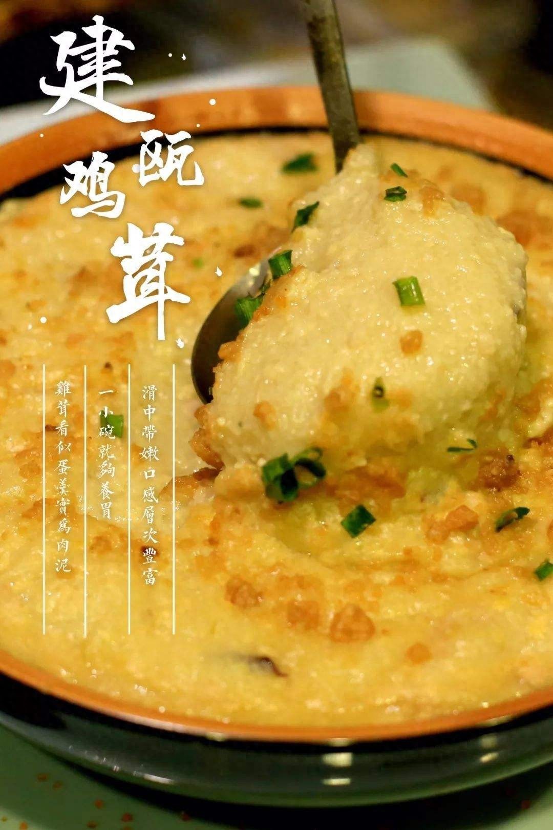 鸡茸简介:所谓鸡茸,并非鸡肉拍成茸状烹调而成,而是建瓯人把某个部位的猪肉称为鸡茸。鸡茸是建瓯地方特色菜,菜名、工艺、品尝,都奇趣无比。鸡茸制作过程如下:瘦肉剁浆拌入蛋液;蛏干、目鱼或猪肚煮熟切成细丝;锅内备适量高汤,倒入调成浆状的蕉芋粉,加热搅拌使淀粉糊化,再将肉蛋浆缓缓下锅,边煮边搅拌并注入猪油,加入辅料,煮至半透明状;烹以黄酒、味精后,再淋上猪油起锅,饰以葱花,即成。特点是色泽泛白,晶莹透亮,味道鲜美,口感爽滑柔韧。奇特之处是在制作过程物理性能变幻无穷,鲜红的鸡茸(猪肉)拌入蛋浆后变成黄色,倒入锅内粉浆后变成灰色,继而受热泛白,最后又变成了晶莹剔透的半透明糊状。成品表面看去像西安搅团,没有一点热气,里面却闷着滚滚热气。菜名、工艺、品尝,都奇趣无比。