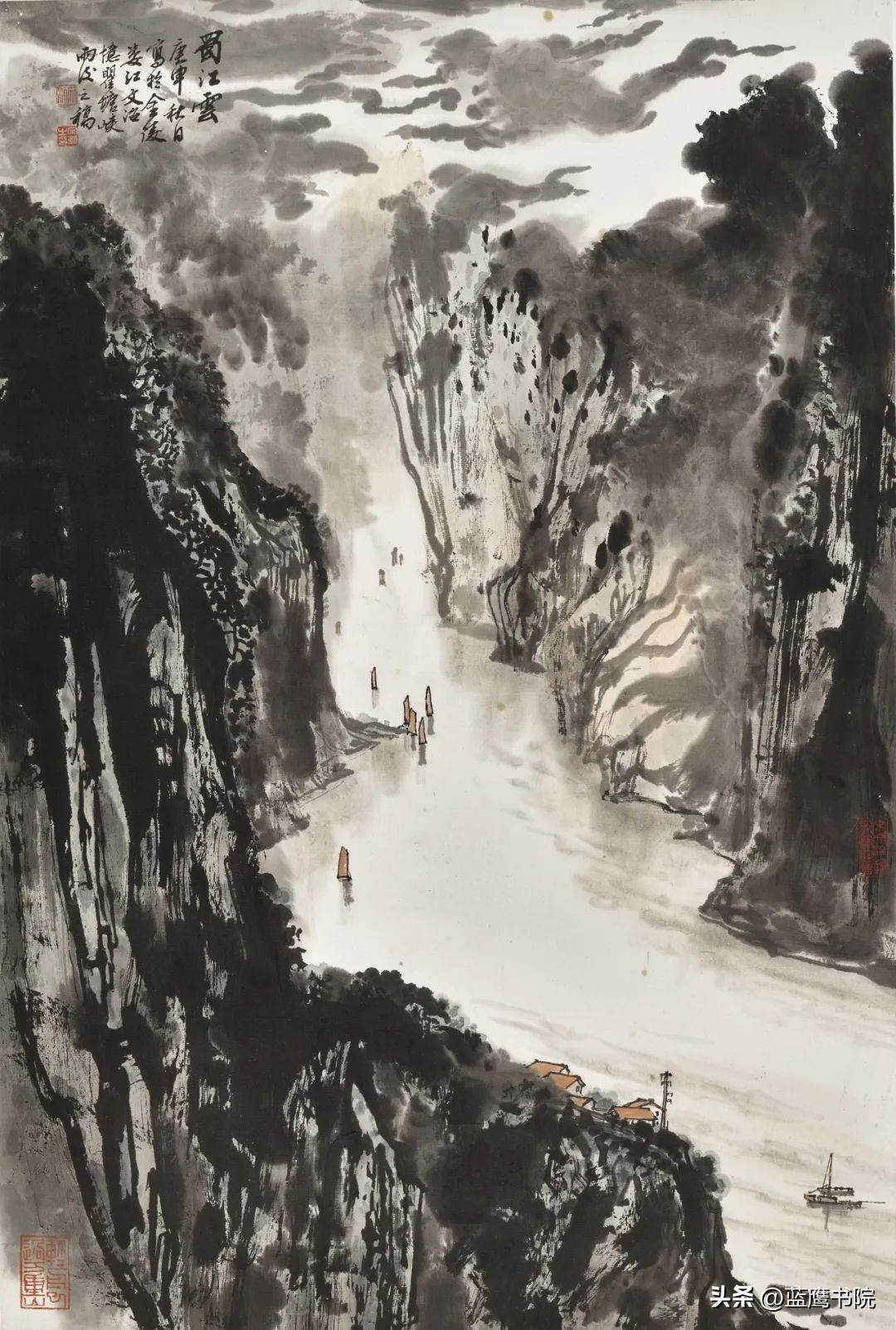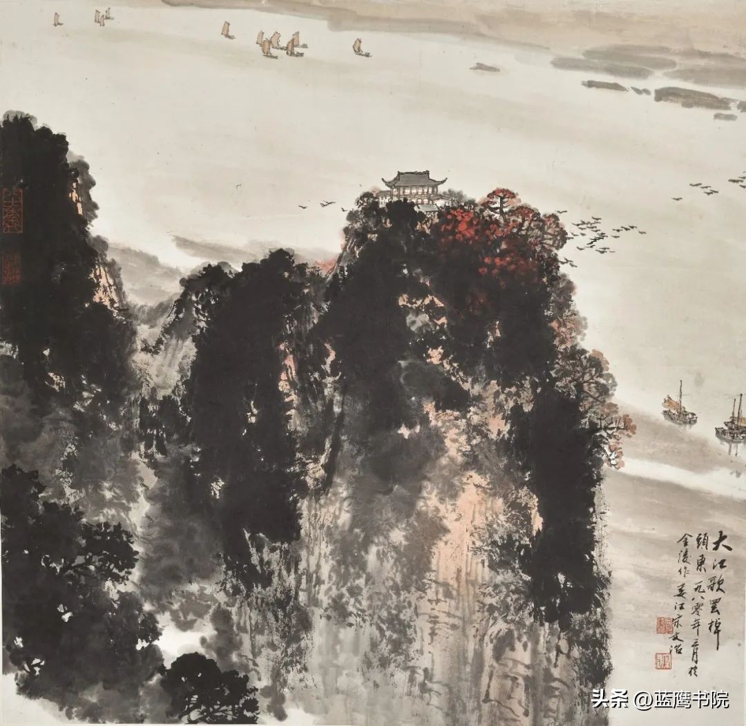 宋文治的山水画在构图上独具匠心,他善于捕捉山水间最具表现力的瞬间,并将其巧妙地组合在画面之中。无论是高远、深远还是平远的构图方式,他都能运用自如。