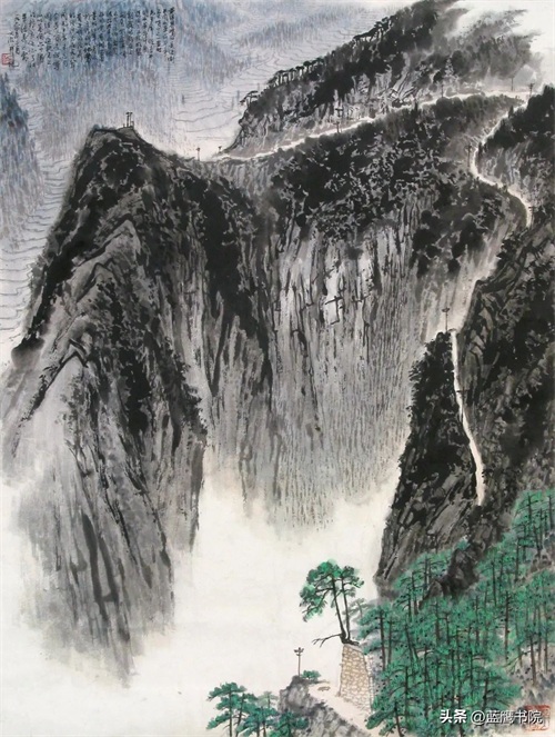 在高远构图中,他常以仰视的角度描绘高山峻岭,如一幅作品中,巍峨的山峰矗立在画面上方,给人以一种崇高、雄伟之感,让人不禁联想到“会当凌绝顶,一览众山小”的豪迈气魄。深远构图则能营造出深邃幽远的空间感,画面中的山峦层层叠叠,连绵不绝,山间云雾缭绕,曲径通幽,恰似“山重水复疑无路,柳暗花明又一村”所描绘的那般神秘而引人入胜。平远构图的作品往往展现出一片开阔的山水景象,河流、田野、村落错落有致地分布在画面中,呈现出一种宁静祥和的氛围,如同“绿树村边合,青山郭外斜”所描述的田园风光。