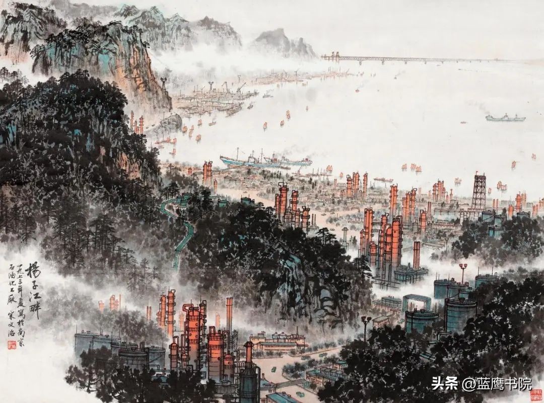 宋文治对色彩的运用独具特色。他善于在传统的水墨基础上,恰到好处地融入色彩,使画面既保留了水墨画的韵味,又增添了几分鲜活的气息。