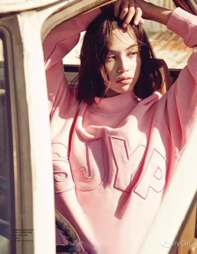 水原希子身着SJYP粉色卫衣