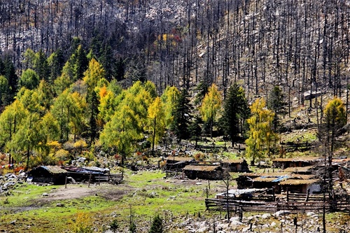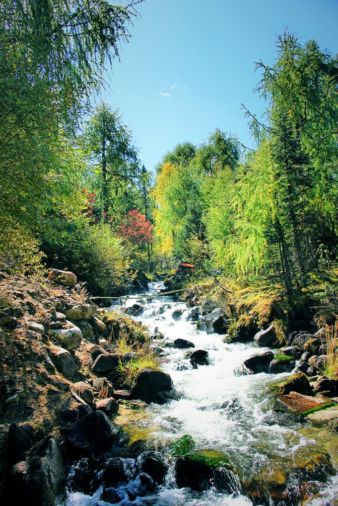 沿俄玛措至七色海途径:转经长廊、红叶观赏区、松萝观赏区、原始森林,可谓真的进入童话的世界,五步一景十步一图,沿途有山川、河流、溪流、瀑布、红石等风景俄罗多姿,将色彩的搭配、动静的结合等发挥至极致……