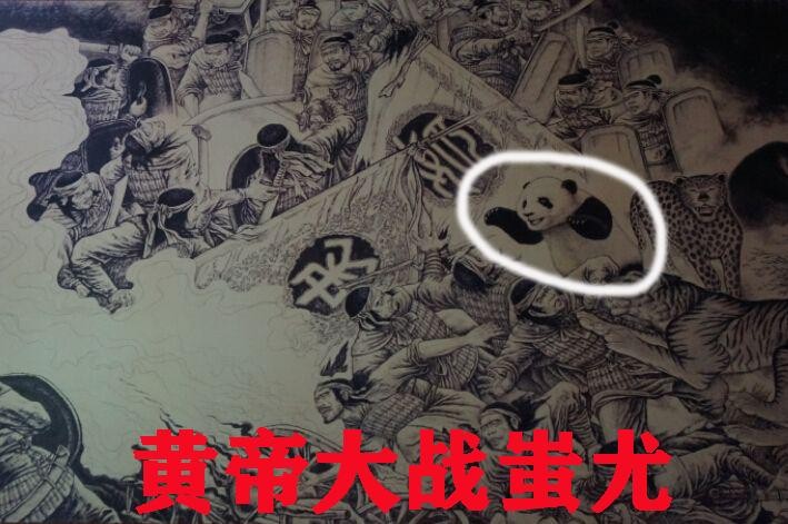 经过了几百万年的进化,熊猫先祖和人类先祖生活在了同一个时代。当人类先祖黄帝和蚩尤大战的时候,熊猫先祖做为蚩尤的的坐骑参与了此次战斗。蚩尤战败后熊猫又跟随黄帝征战炎帝,帮助黄帝统一了华夏。因此熊猫也被载入了《史记》,也被世人称为“上古神兽”。