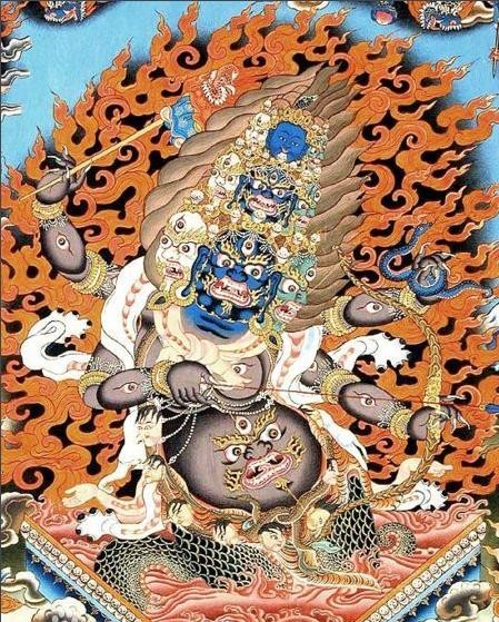 这个原始与古印度神话中的恶魔,相传为“达耶提耶王毗婆罗吉提”与“达刹之女辛悉迦”所生之子,他又被称为“行星、流星之王”,西南方的守护神;他长有四只手,下半身为蛇尾,好为非作歹。