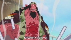 黄猿中将及长帽少将。年轻的黄猿深知泰格实力,在海上想逮捕泰格基本上不可能,所以黄猿一直追踪泰格的位置,但不敢亲自出手,伺机而动。