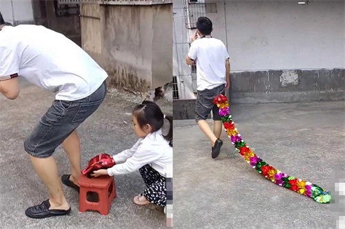 闺女敢这么干,儿子得挨削!小明的妹妹把家里的小狗打扮成了一个小公主,爸爸笑着说:“你要是个儿子,我就把你打一顿!”笑点解释:通过性别差异制造幽默效果。