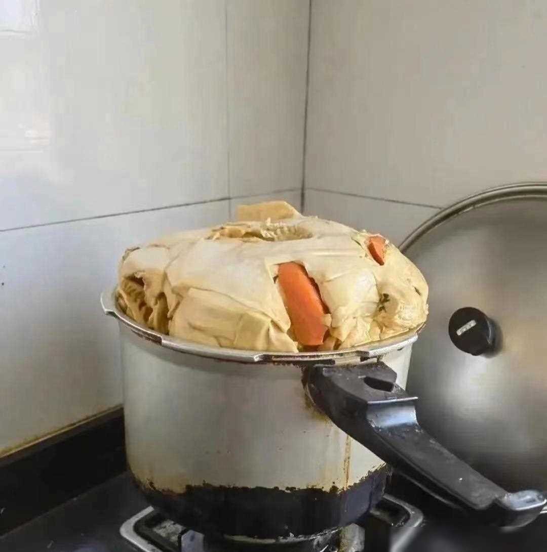 红薯长毛了?元旦出门三天,小明把红薯放在锅里忘了拿出来,回来一看,红薯上竟然长了毛!笑点解释:以“红薯长毛”的夸张表达制造幽默效果。
