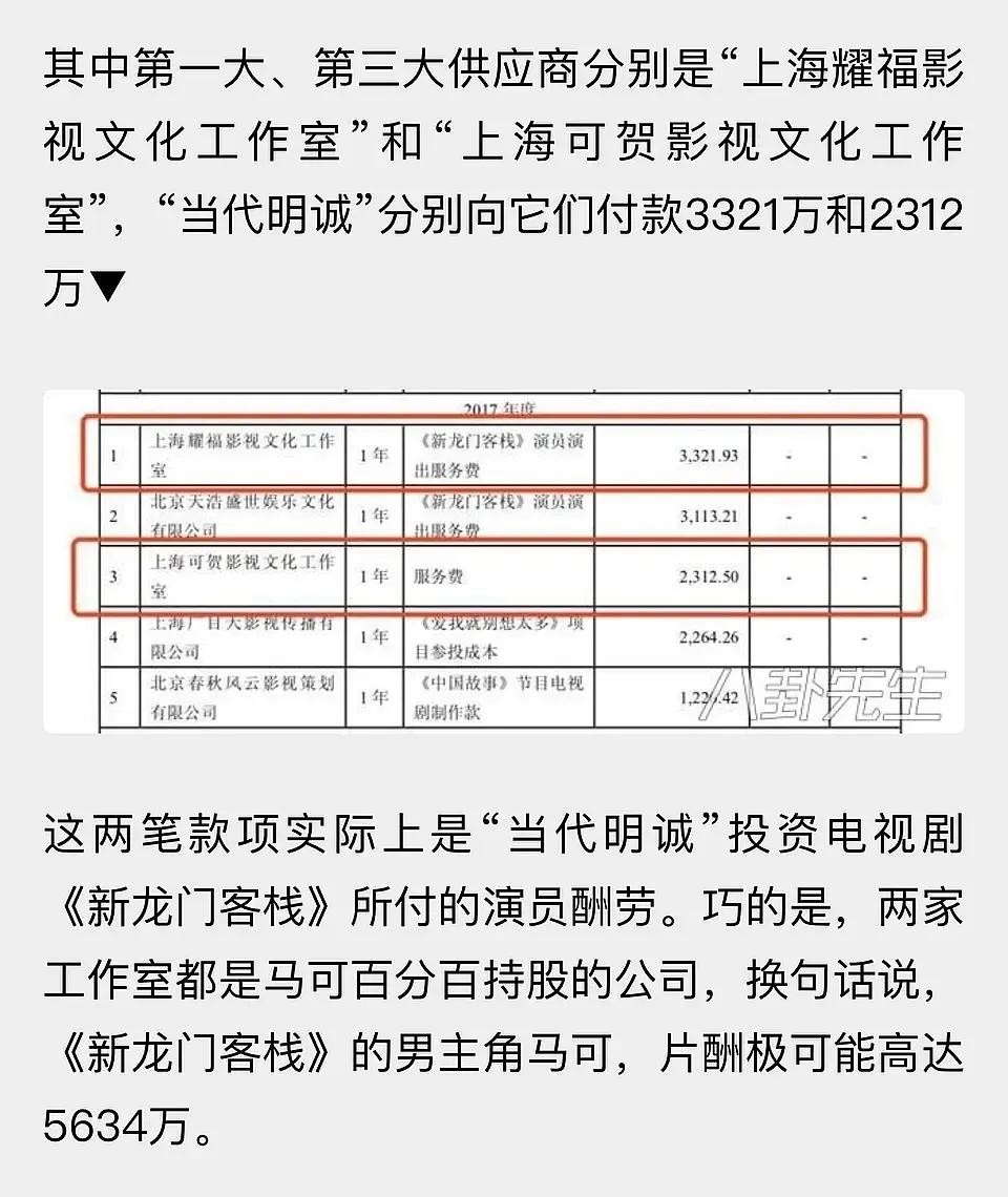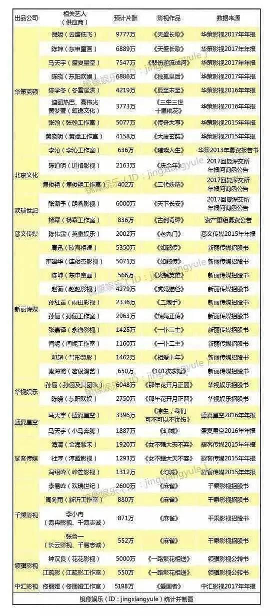 明星片酬很高应该已经是众所周知的事情,前段时间的限酬令也引起了不小的讨论。但大家对明星参演一部戏具体能拿多少钱想必没有太深的了解。近期各个上市公司都在公布财务年报,所以这边带大家了解一下明星的片酬到底如何。