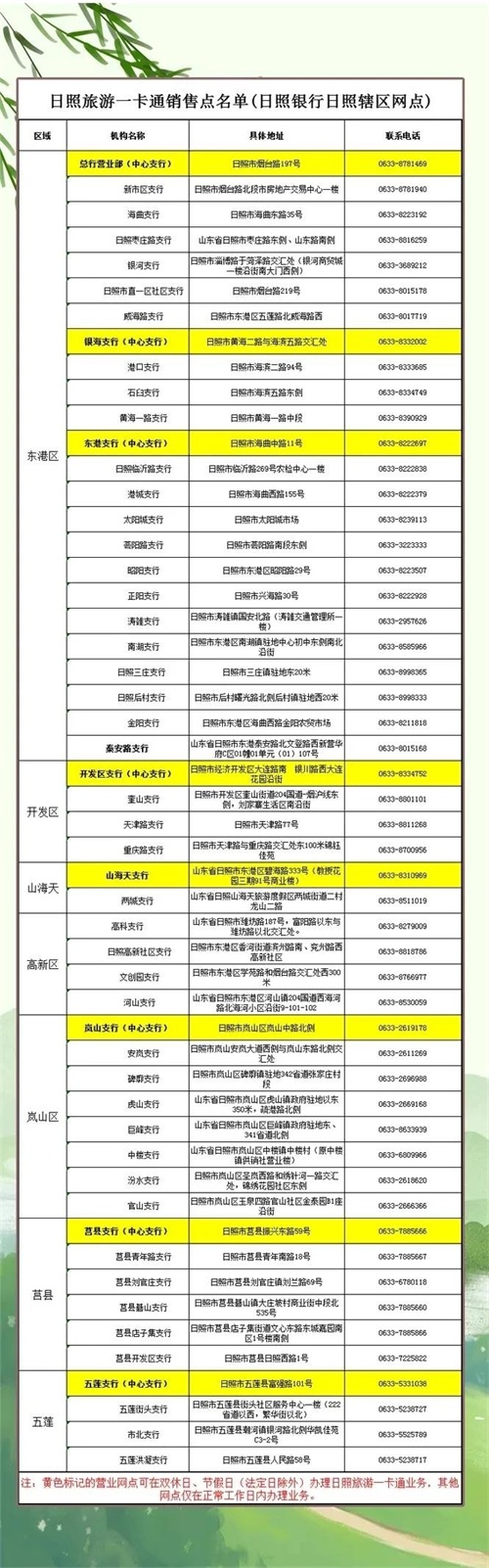1. 速看!日照旅游“一卡通”温馨提示,文末附加盟景区、线下办理网点~