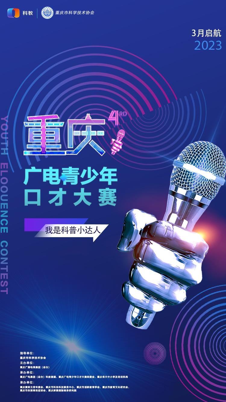 由重庆广播电视集团(总台)主办,重庆市科学技术协会指导,重庆播音主持专委会、重庆市科协科技服务中心、重庆市创新教育学会、重庆市教育文化研究会、重庆市生涯规划促进会、重庆新雅国际商务研究院支持,重庆广电集团(总台)科教频道、重庆广电青少年口才大赛组委会、重庆各大中小学及培训机构承办的——