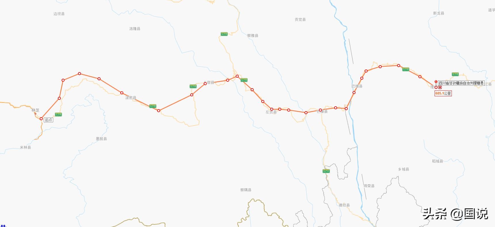 理塘至林芝路线示意图