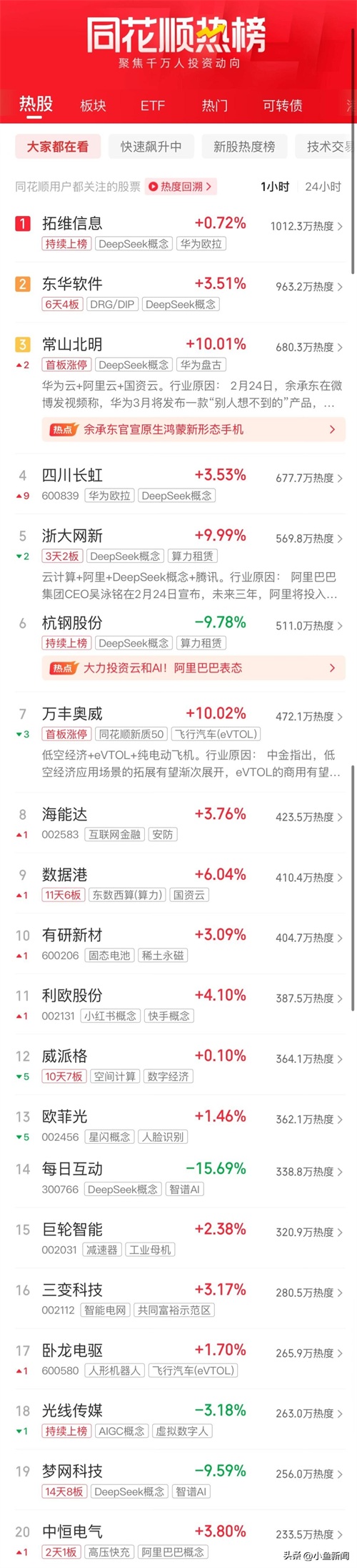 同花顺热股榜: