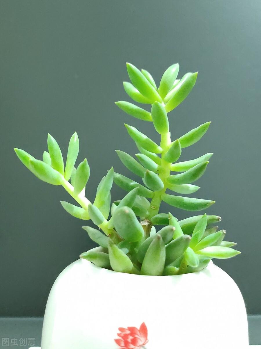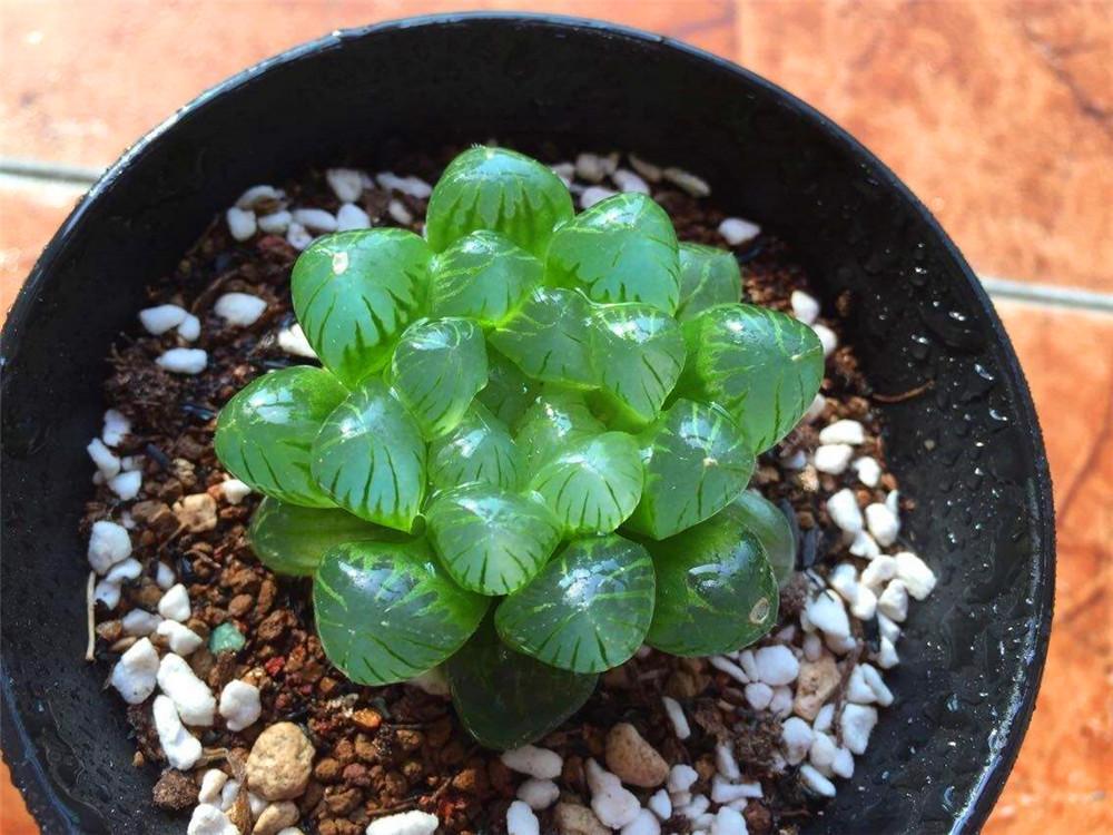 叶似纺锤非常可爱,是少有的叶片带纹路的多肉植物。