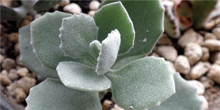 叶片呈莲座状,叶表有白色粉末,摸起来有磨砂质感。